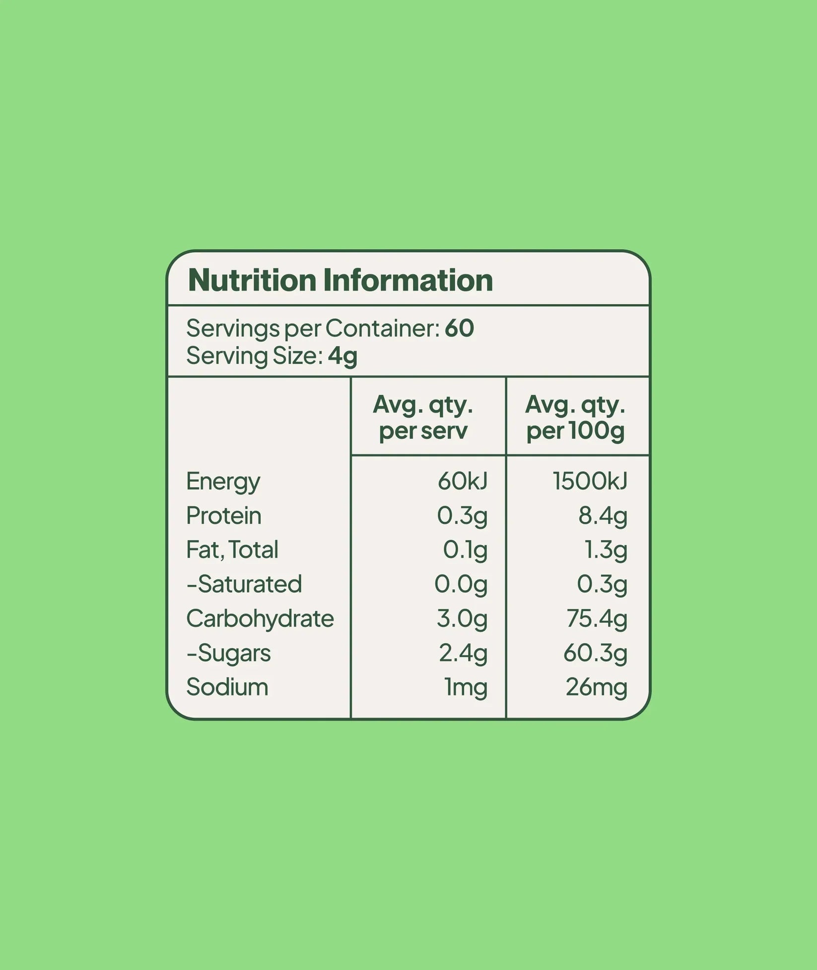 300g Cylinder — approx. 60 servings (based on 5g per serve).
